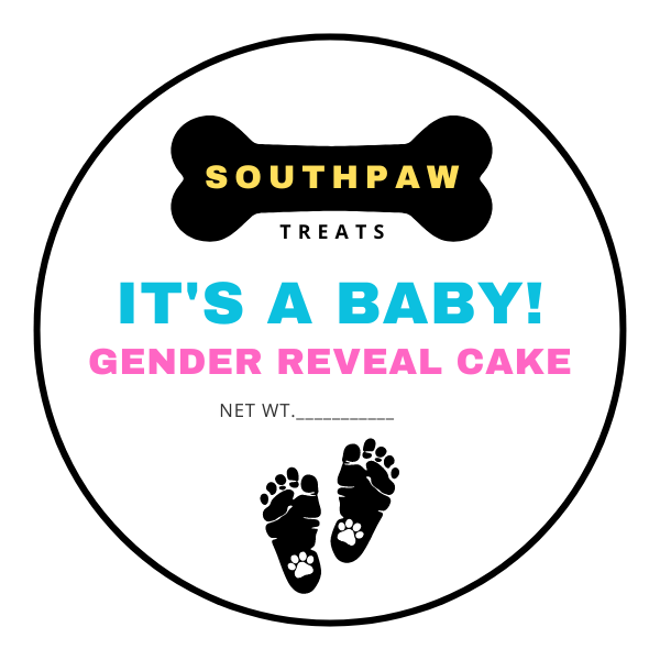 Please note, this cake is available for pick-up only at SouthPaw Treats bakery—located right at my home. Treat your dog to this unique experience and make your gender reveal party unforgettable!